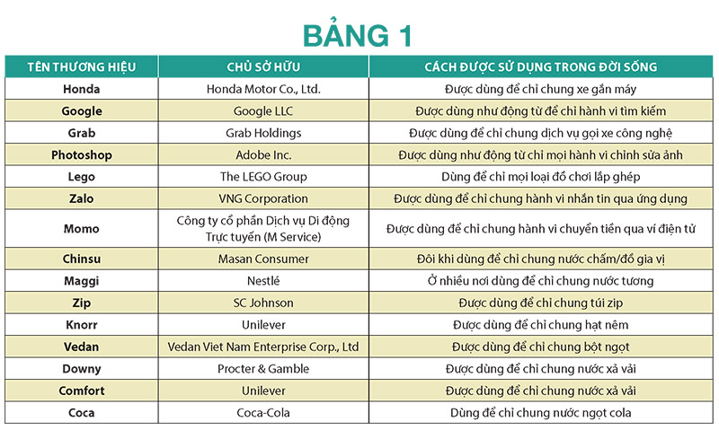Trong đời sống hàng ngày, nhiều người vẫn dùng các cách nói như “đi xe honda”, “đi grab”, “để tôi google thử”, “photoshop giùm tôi bức ảnh này”, “chơi lego”… Ở một khía cạnh nào đó, những cách nói này phản ánh sự thành công của doanh nghiệp sở hữu nhãn hiệu đã thành quen thuộc đến mức gắn liền với cả một nhóm sản phẩm hoặc hành vi trong đời sống thường nhật của cộng đồng người tiêu dùng. Tuy nhiên, đây cũng là dấu hiệu của một rủi ro lớn cho doanh nghiệp.