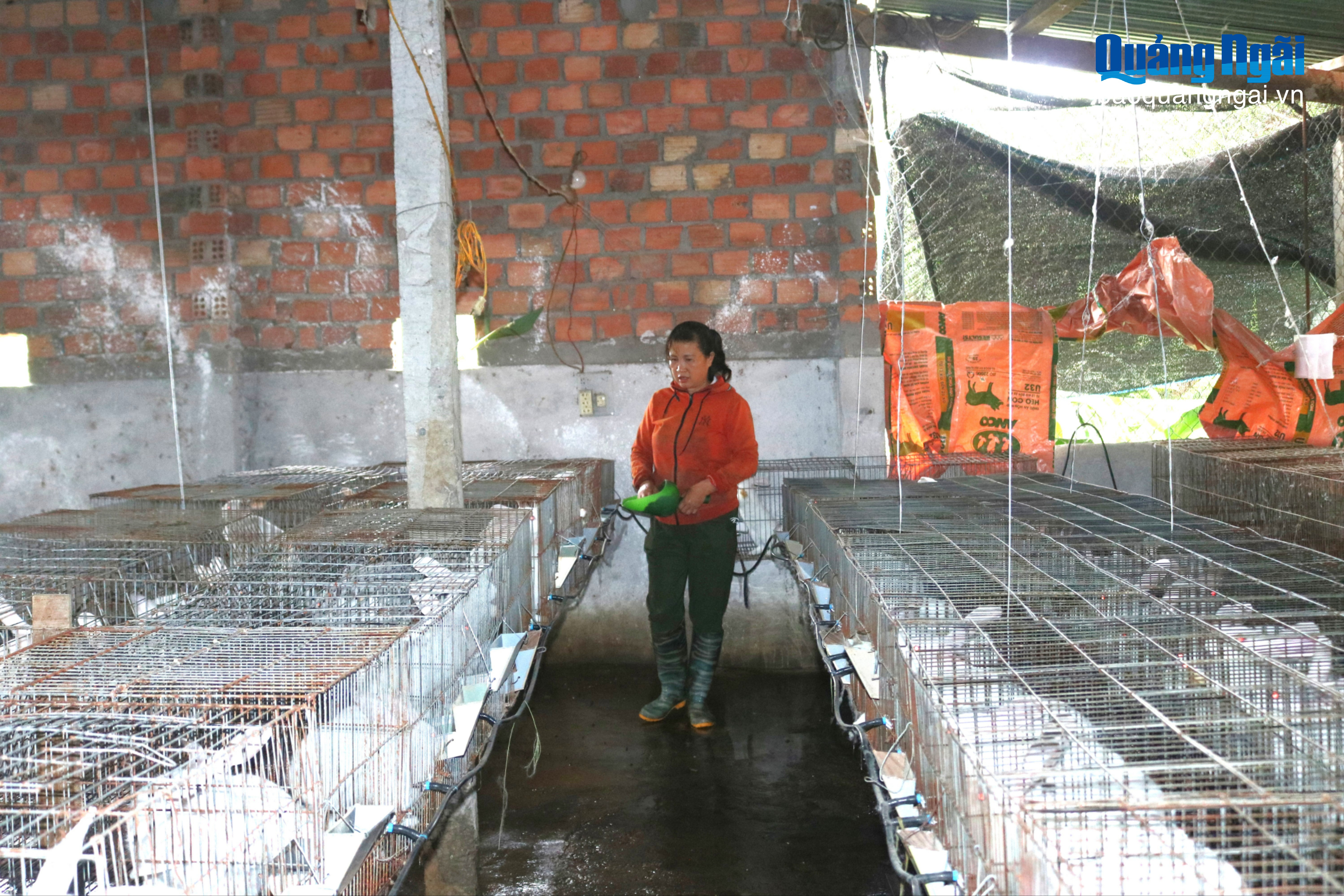 Bà Nhung chăm sóc đàn thỏ của gia đình.