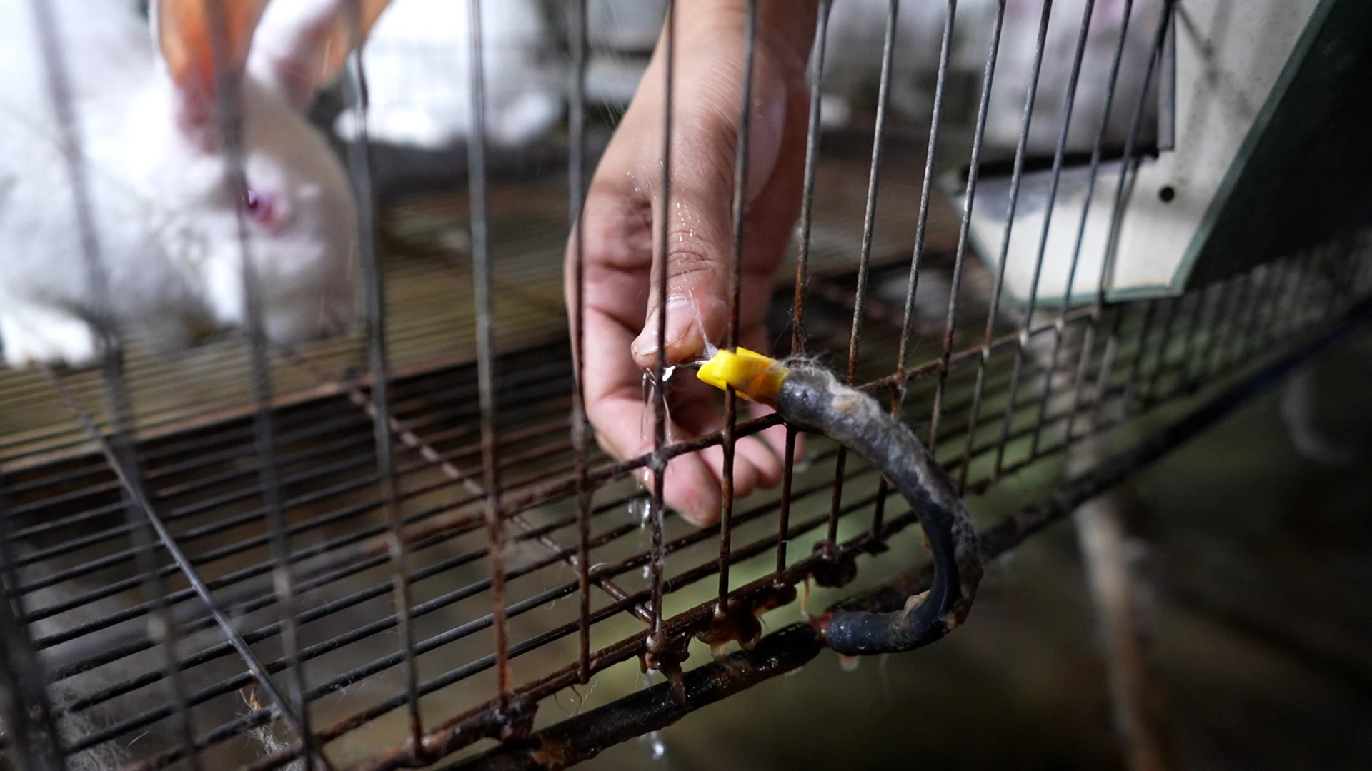 Hệ thống vòi uống nước bán tự động trong trại nuôi thỏ.