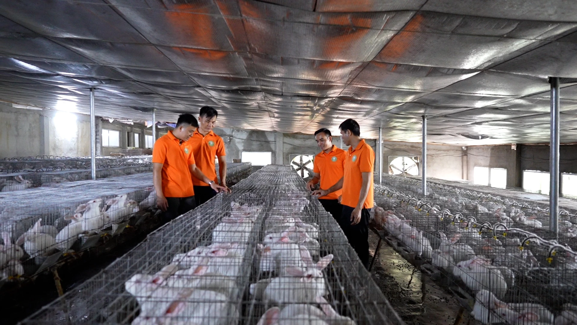 Không dừng lại ở việc làm giàu cho bản thân, anh Hà Minh Tuấn Anh luôn nung nấu ý định tạo ra một cộng đồng cùng phát triển. “Muốn đi nhanh thì đi một mình, muốn đi xa phải đi cùng nhau”, tư duy ấy đã dẫn dắt anh đến việc thành lập HTX Chăn nuôi và Chế biến thỏ Hoàng An vào năm 2023.Hiện nay, HTX Chăn nuôi và Chế biến thỏ Hoàng An đã có 9 thành viên. Điều thú vị là nhiều thành viên trong HTX biết đến nhau qua mạng xã hội, từ những lần chia sẻ kinh nghiệm trên các hội nhóm nuôi thỏ. Mỗi người một quê nhưng đều gặp nhau ở khát vọng đổi đời trên chính mảnh đất quê hương. Tổng diện tích trại chăn nuôi thỏ của HTX Chăn nuôi và Chế biến thỏ Hoàng An khoảng 5.000m2, chăn nuôi hơn 10.000 con thỏ mỗi năm.