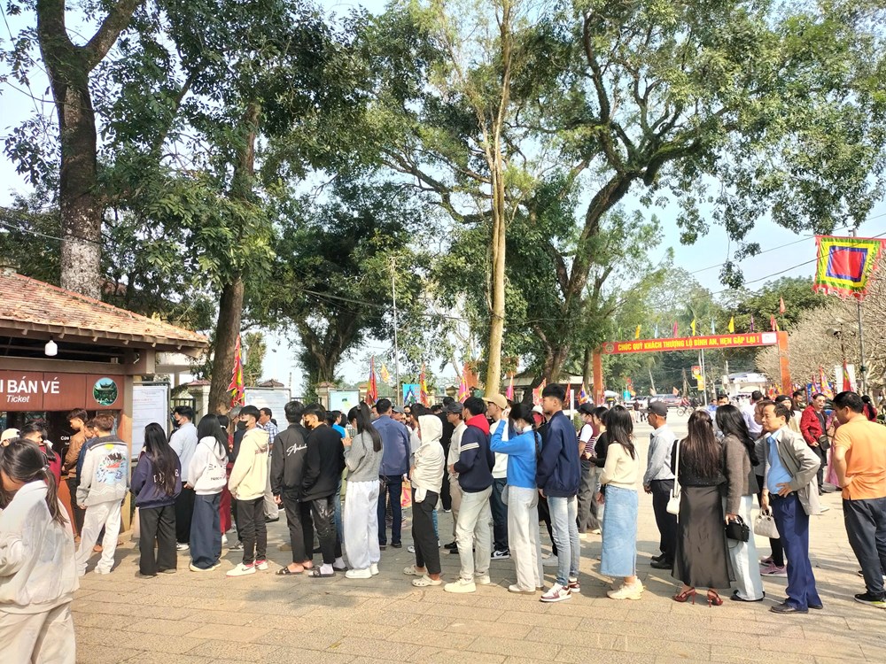 Du khách xếp hàng mua vé tham quan Khu di tích quốc gia đặc biệt Lam Kinh trong những ngày cao điểm Tết Bính Ngọ 2026. Ảnh: Nguyễn Linh