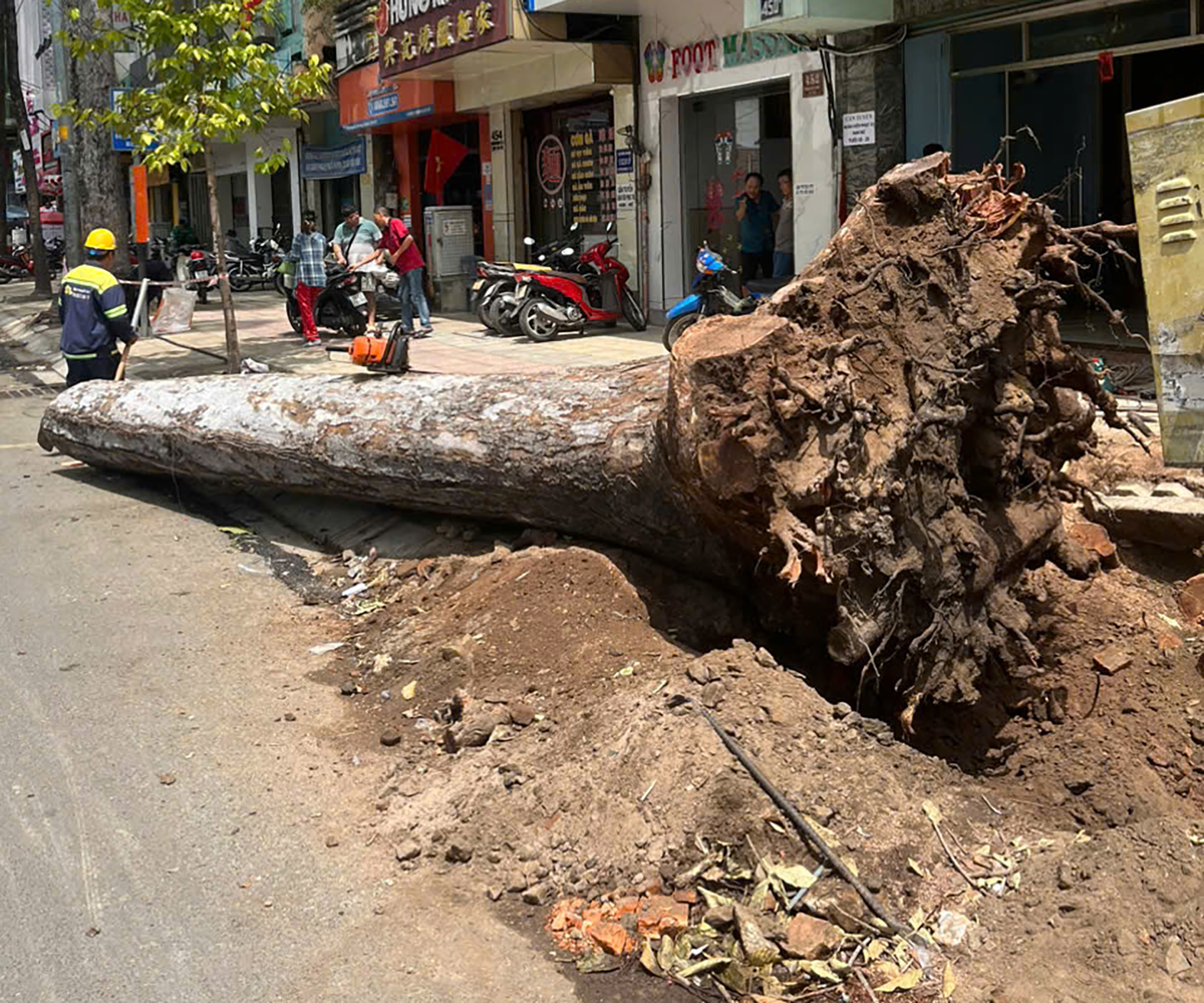 Một cây xanh cổ thụ trên đường Trần Hưng Đạo, quận 5, TPHCM bị đốn hạ