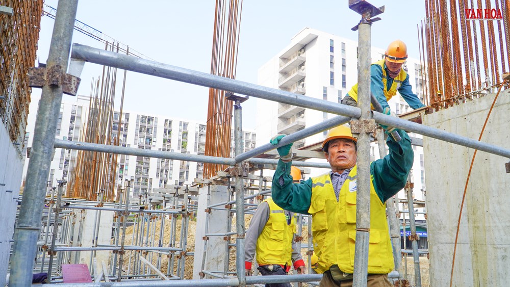 Trên công trường, ba tổ thi công chính gồm: nề, cốt pha và thép được triển khai cùng lúc. Các hạng mục kết cấu được tổ chức theo dây chuyền khép kín. Nhiều thời điểm, đổ bê tông kéo dài đến 11-12 giờ đêm để đảm bảo tiến độ. Với việc áp dụng công nghệ thi công mới, mỗi tòa nhà đạt tốc độ trung bình 10 ngày hoàn thành một tầng kết cấu gồm: cột dầm, khung và sàn.
