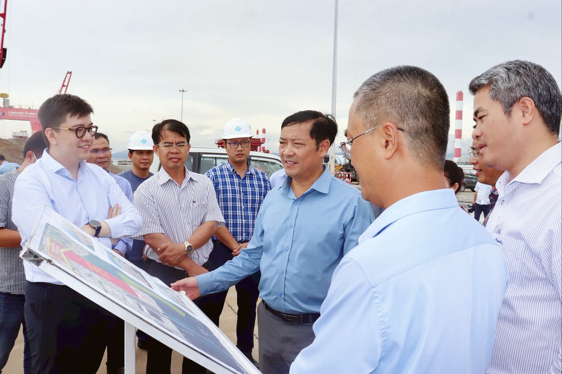 Ủy viên Ban Thường vụ Tỉnh ủy, Phó Chủ tịch Thường trực UBND tỉnh Lê Trọng Yên khảo sát thực địa Cảng Quốc tế Vĩnh Tân (xã Vĩnh Hảo)