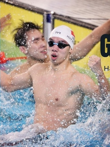 Tối 9/10 vừa qua, kình ngư Gen Z nổi tiếng Nguyễn Huy Hoàng tiếp tục làm nên thành tích "khủng" khi tham gia Giải bơi vô địch Quốc gia năm 2025. Vượt qua nhiều đối thủ mạnh, Nguyễn Huy Hoàng giành tấm huy chương vàng (HCV) thứ 5 cho đội bơi Quảng Trị, ở cự ly 200m bơi bướm nam với thành tích ấn tượng 2 phút 1 giây 29.