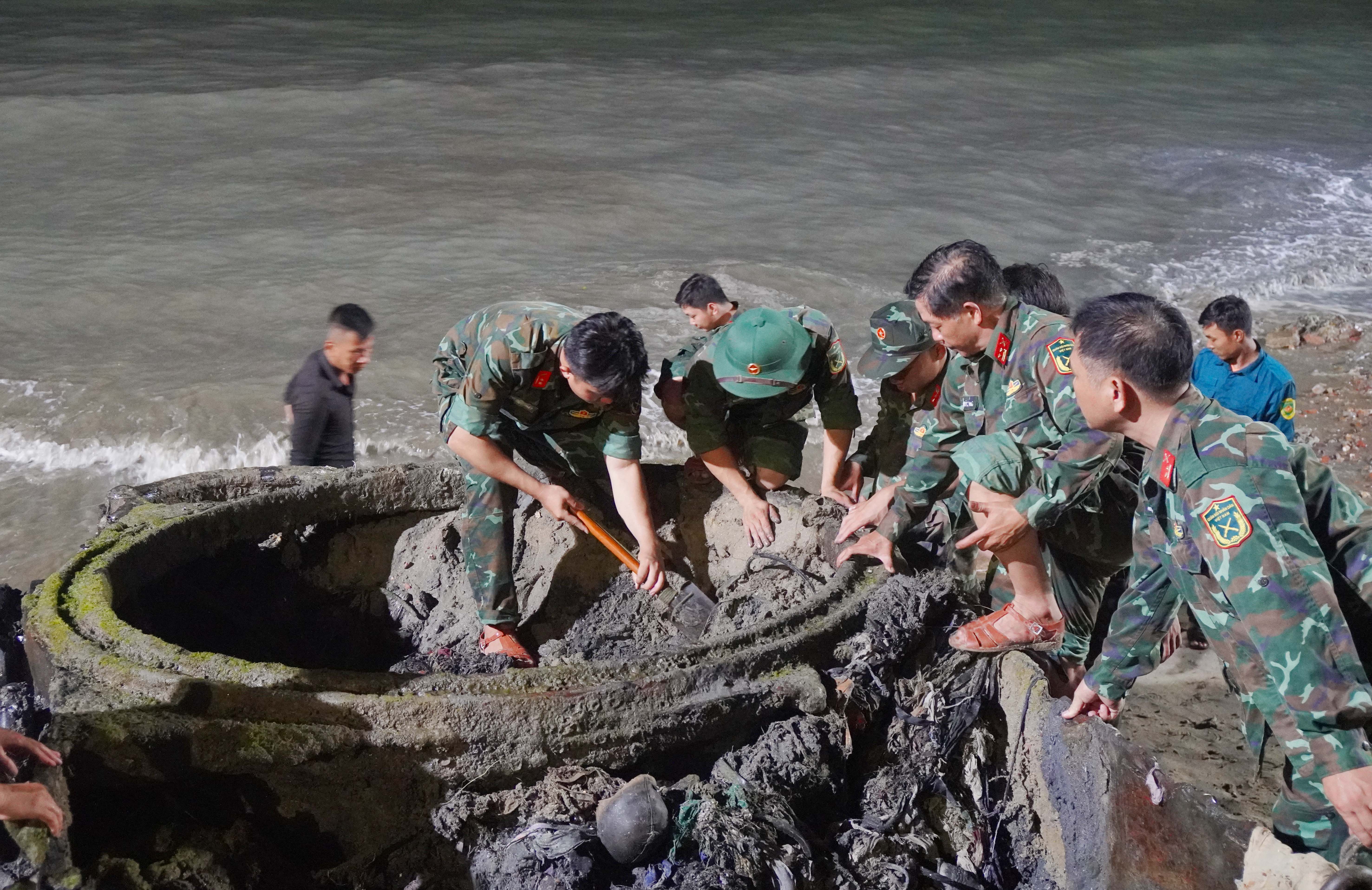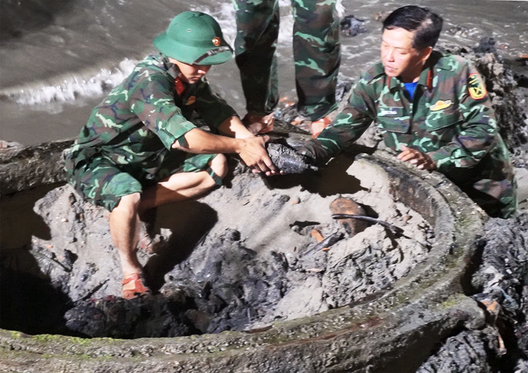 Trước đó, lúc 14 giờ ngày 29-4, tranh thủ lúc thủy triều rút, Bộ CHQS tỉnh Gia Lai huy động 40 cán bộ, chiến sĩ cùng lực lượng chuyên trách đến hiện trường triển khai trục vớt.