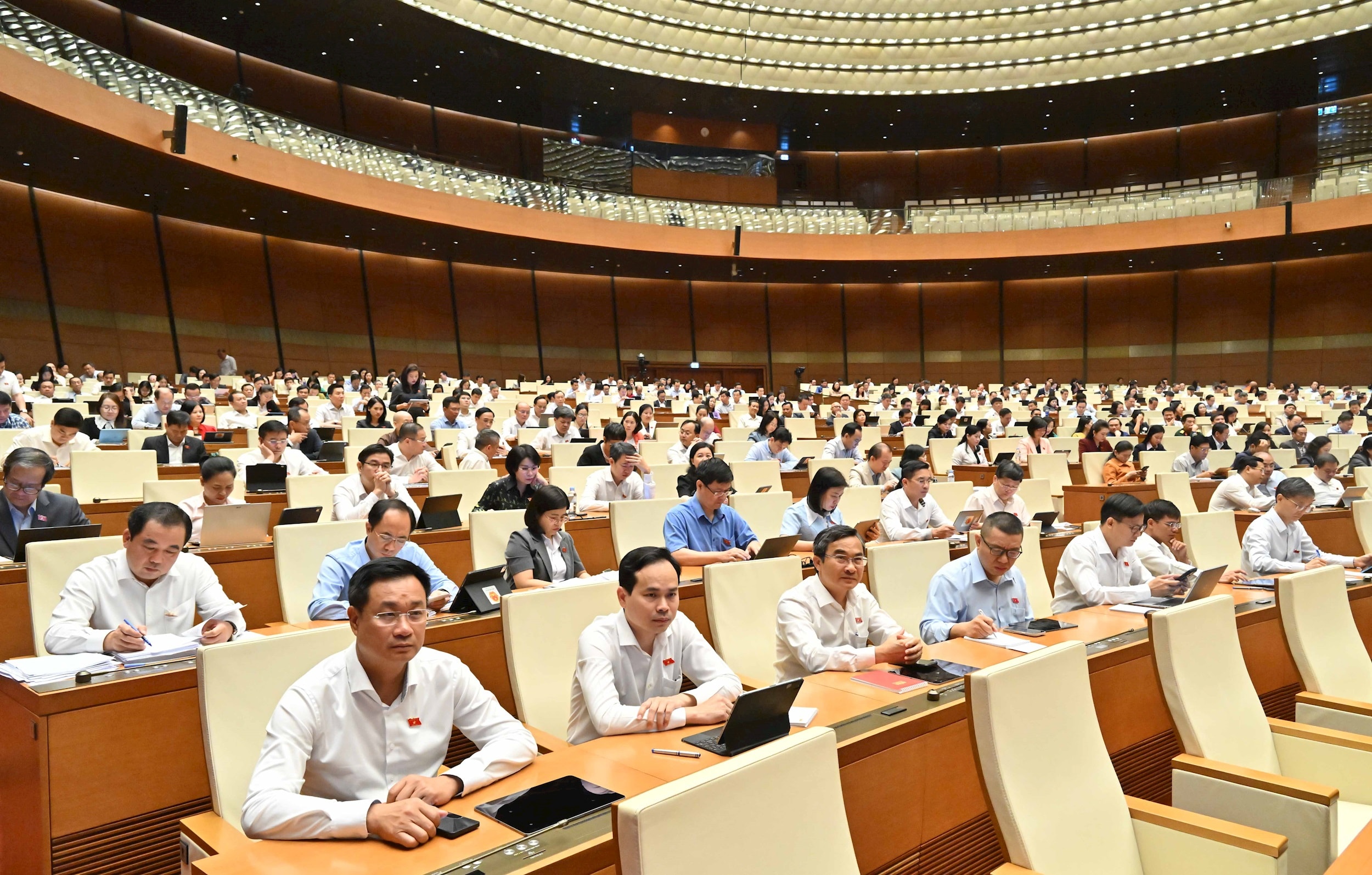 Các đại biểu Quốc hội tham gia phiên thảo luận tại hội trường sáng 11-4. Ảnh: quochoi.vn