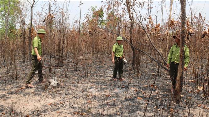 Lực lượng chức năng kiểm tra, rà soát hiện trường khu vực rừng giáp ranh giữa xã Ia Lâu và xã Ia Le, tỉnh Gia Lai.