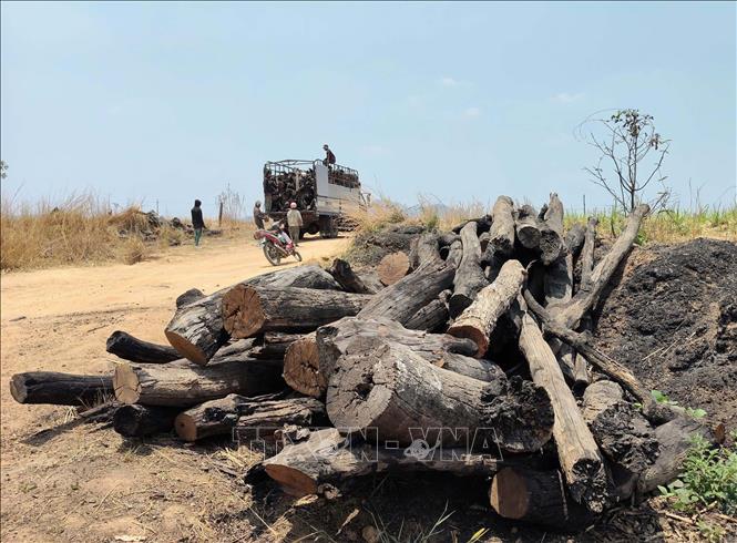Lực lượng chức năng thu giữ gỗ, củi rừng tại khu vực rừng giáp ranh giữa xã Ia Lâu và xã Ia Le, tỉnh Gia Lai.