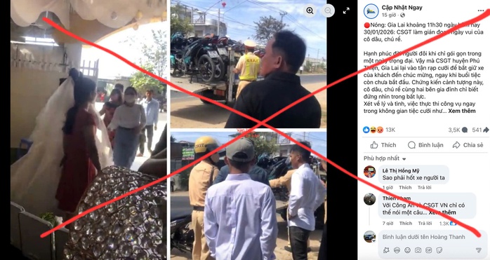 Tuy nhiên, không lâu sau đó, trên mạng xã hội lại đăng tải thông tin không đúng sự thật, xuyên tạc rằng lực lượng CSGT đã vào tận rạp cưới thu giữ xe của một số khách đến chúc mừng khi đám cưới chưa bắt đầu, "làm gián đoạn ngày vui của cô dâu, chú rể". Thậm chí, một số ý kiến còn kêu gọi cộng đồng mạng "lên tiếng đòi lại công bằng cho đôi bạn trẻ".