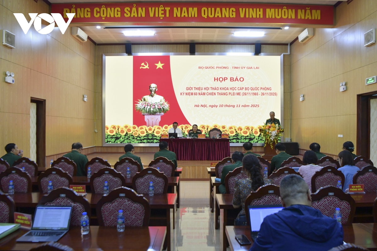 Ngày 10/11, tại Hà Nội, Bộ Quốc phòng phối hợp với Tỉnh ủy Gia Lai tổ chức họp báo giới thiệu Hội thảo khoa học cấp Bộ Quốc phòng kỷ niệm 60 năm Chiến thắng Plei Me (26/11/1965 - 26/11/2025).
