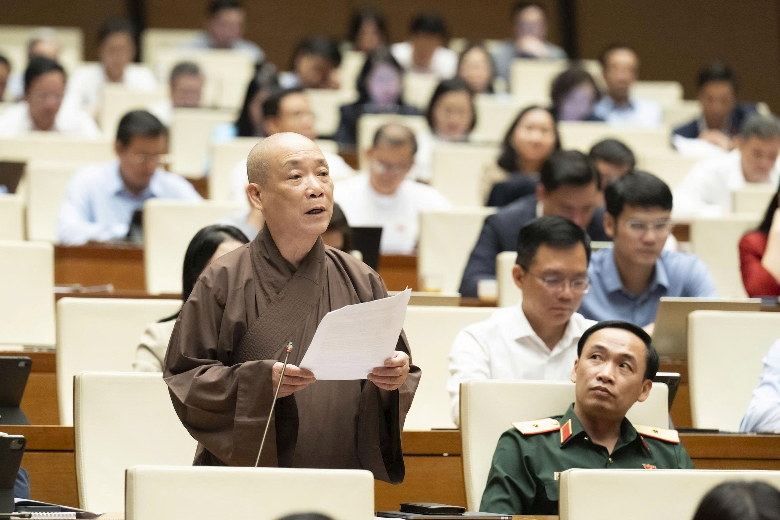 Hòa thượng Thích Bảo Nghiêm, đại biểu Đoàn Hà Nội, phát biểu thảo luận. Ảnh: quochoi.vn