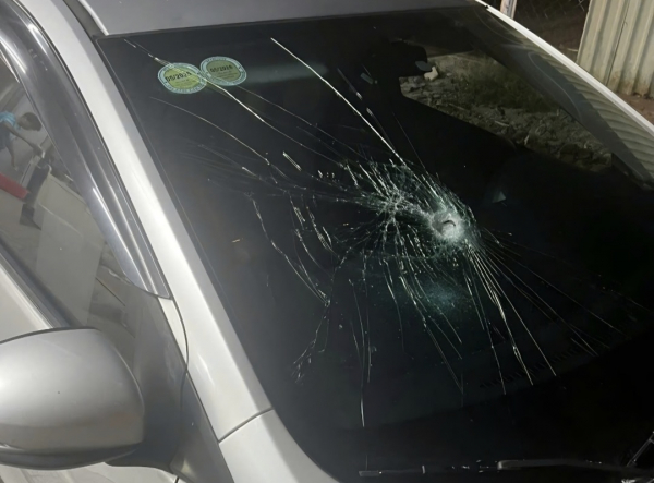 Một thanh niên cầm vật cứng (chưa rõ là vật gì) tác động lên phần kính chắn gió của xe ô tô, làm bể kính. Người còn lại dùng chân đá vào đầu xe và sau đó tất cả bỏ đi.