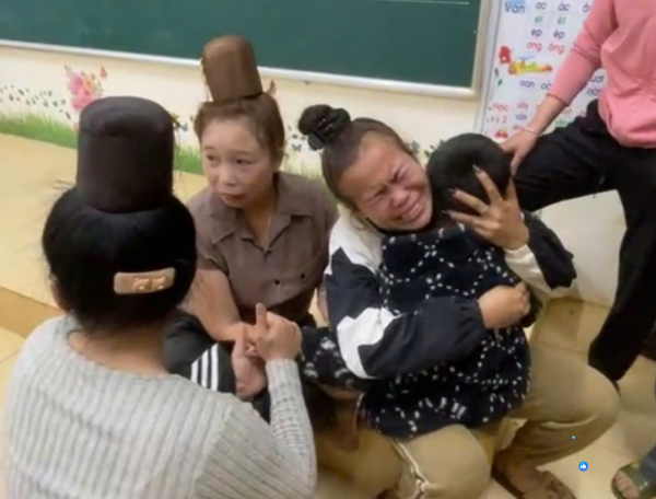 Người mẹ òa khóc sau khi tìm thấy con trong lớp học đã bị khóa cửa.