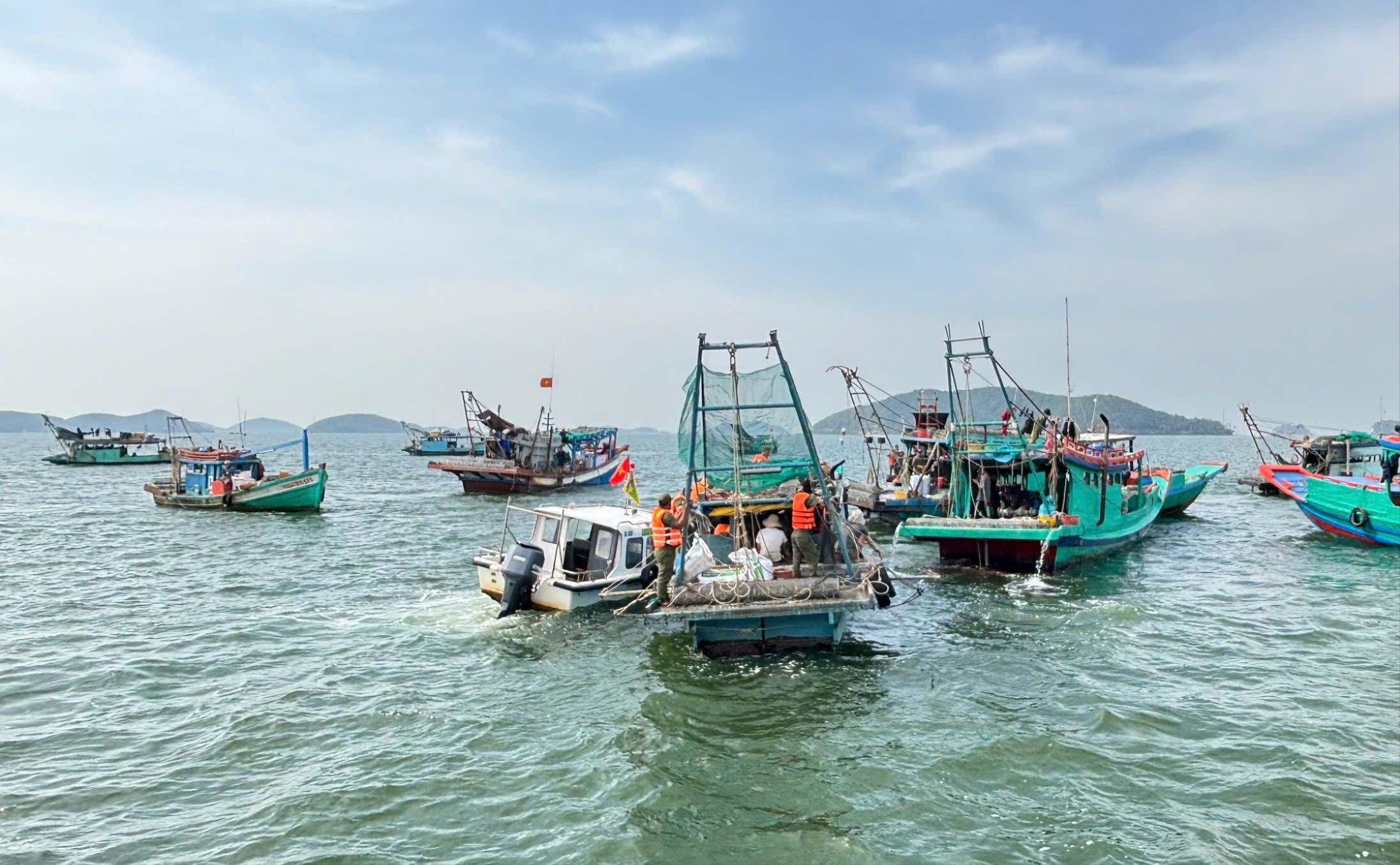 Lực lượng chức năng tuyên truyền, vận động tàu cá rời khỏi khu vực cấm khai thác