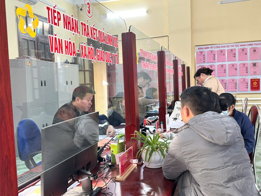 Người dân xã Thông Nông đến đăng ký biến động đất đai tại Trung tâm Phục vụ hành chính công xã.