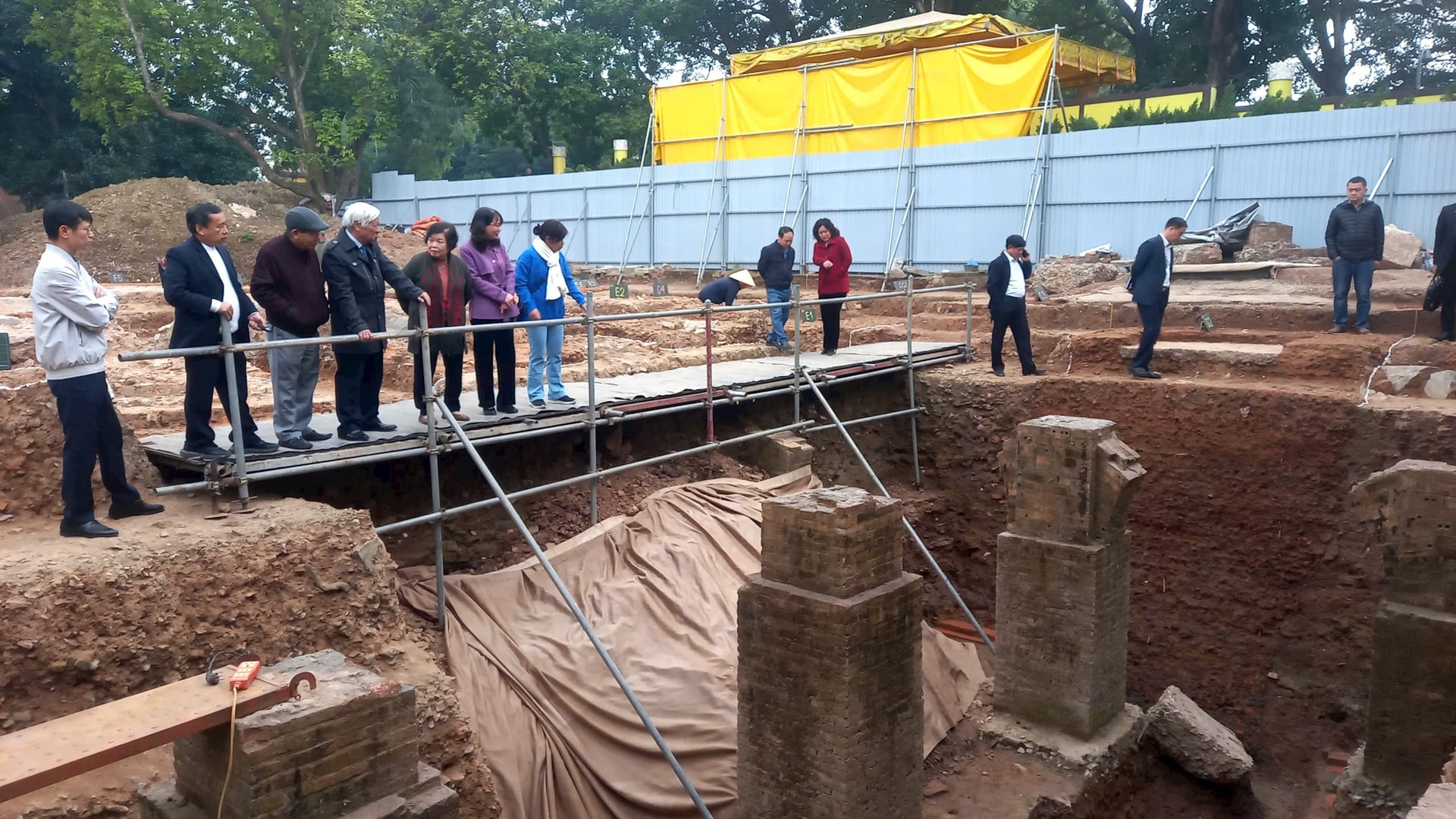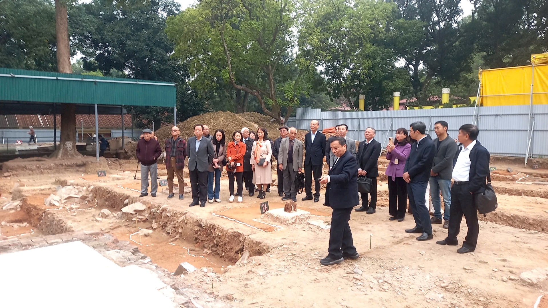 Viện Khảo cổ học Việt Nam giới thiệu những phát hiện mới tại hố khai quật. Ảnh: H.L