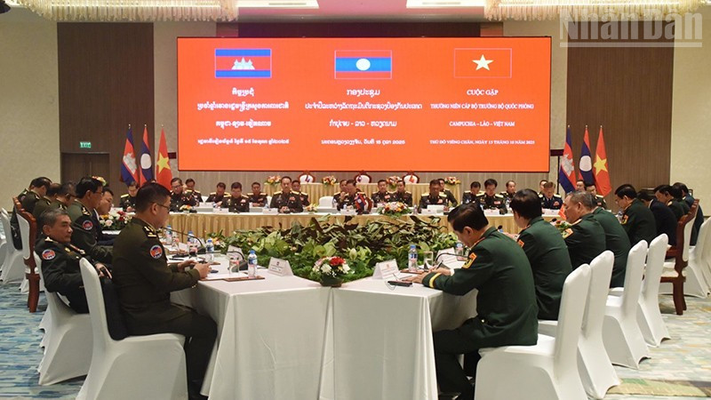 Chiều 15/10, tại Thủ đô Vientiane, Lào, diễn ra cuộc gặp thường niên cấp Bộ trưởng Quốc phòng ba nước Việt Nam-Lào-Campuchia.