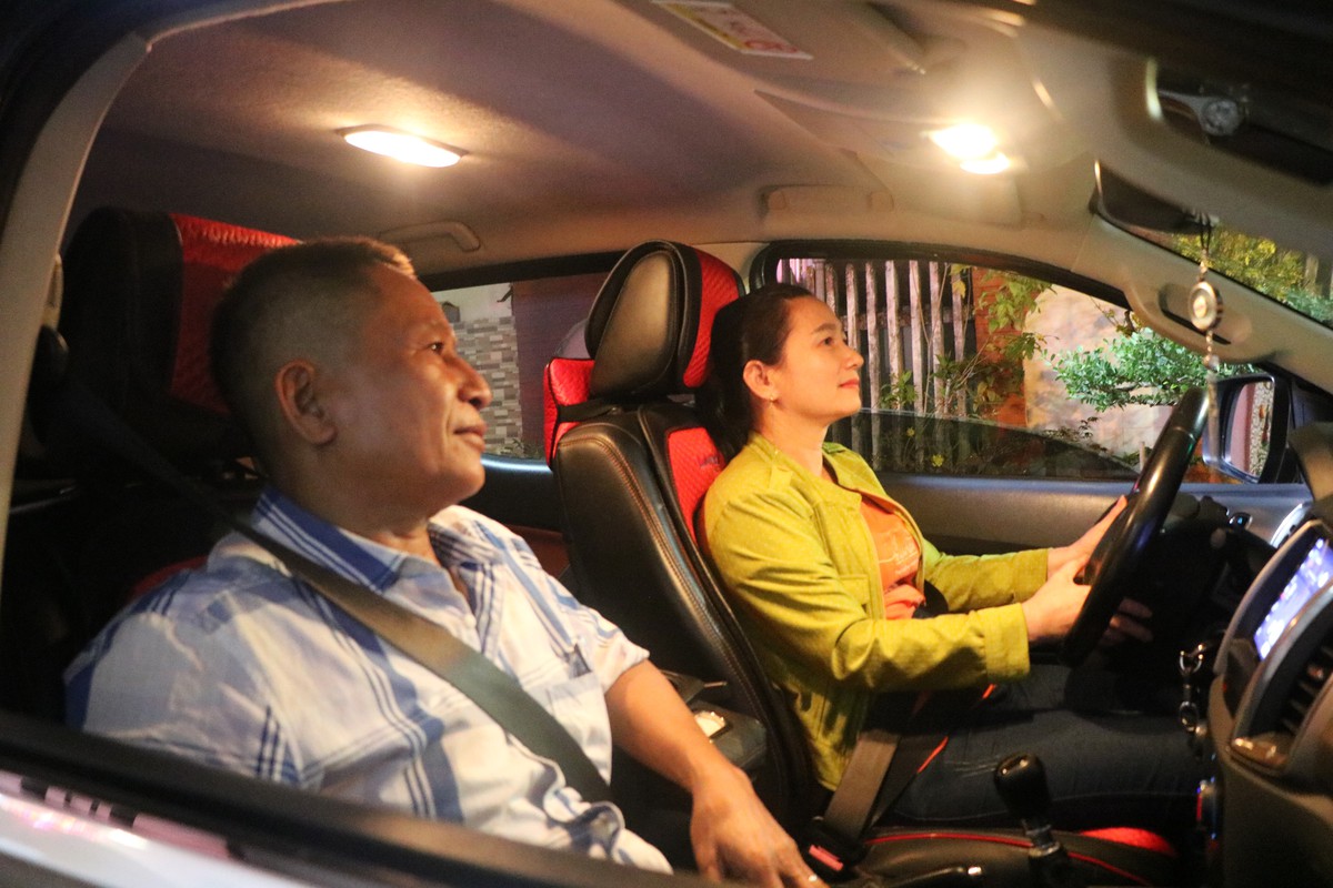 Không một lời cằn nhằn, bà Hồng Lê thuần thục ngồi vào ghế lái, thắt dây an toàn cho cả hai. Với bà, việc học lái xe ô tô cách đây vài năm là quyết định sáng suốt.