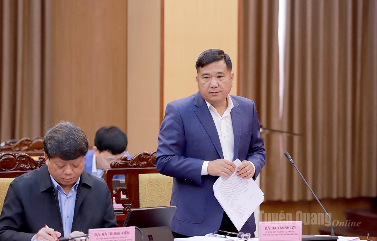 Phó Chủ tịch Thường trực HĐND tỉnh Hầu Minh Lợi phát biểu thảo luận tại Phiên họp.