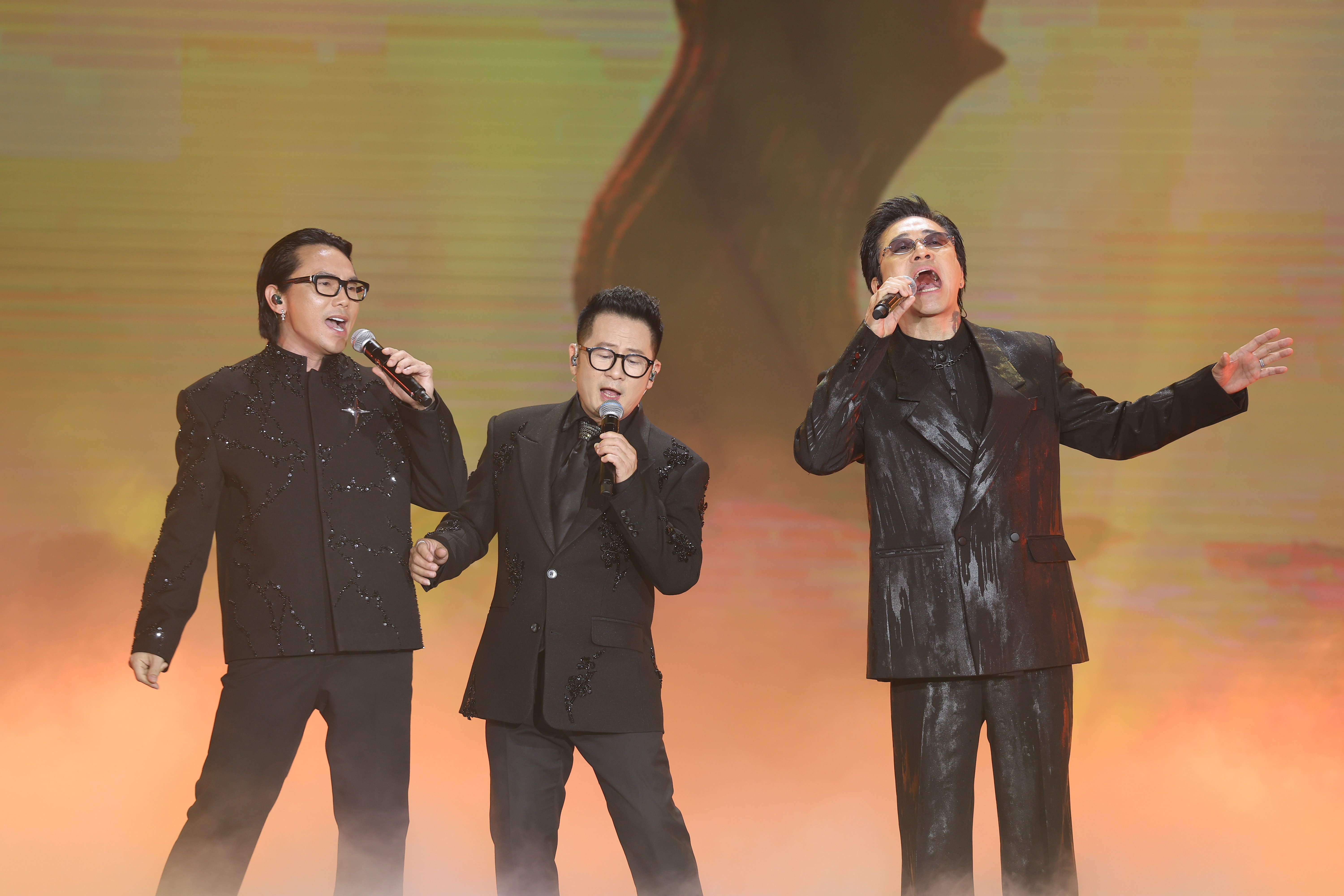 Ngay từ những phút mở màn, sân khấu “nóng” lên với tiết mục kết hợp giữa Lam Trường, Khắc Việt và Quốc Thiên qua liên khúc Ngỡ – Gót hồng – Kathy Kathy. Ba giọng ca thuộc ba thế hệ đứng chung sân khấu tạo nên khoảnh khắc giàu tính biểu tượng. Khi những giai điệu quen thuộc vang lên, cả khán phòng nhanh chóng hòa giọng, cho thấy sức sống bền bỉ của những ca khúc gắn liền với thanh xuân của nhiều thế hệ khán giả.