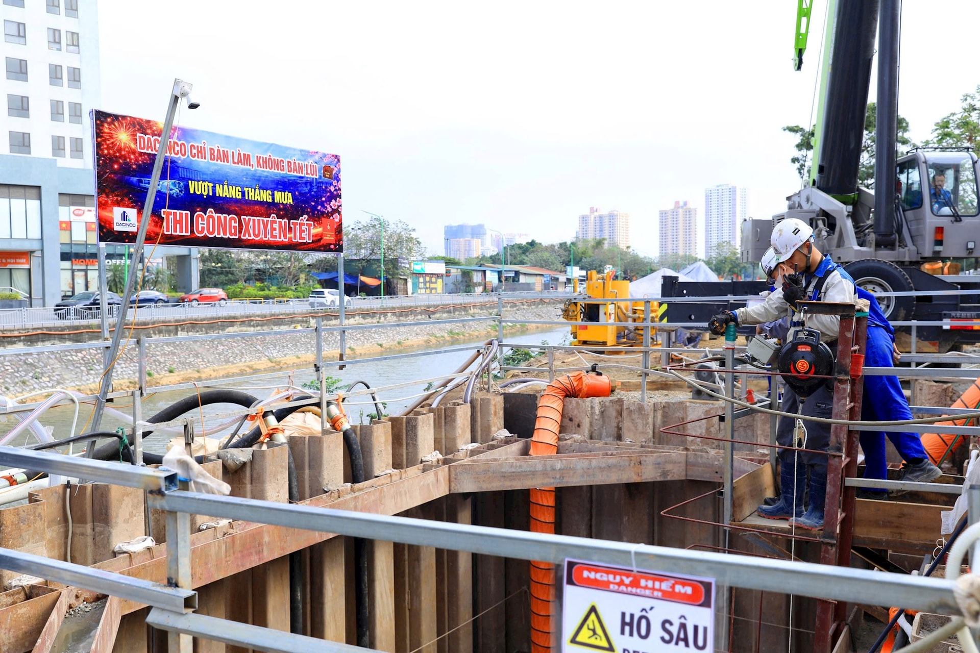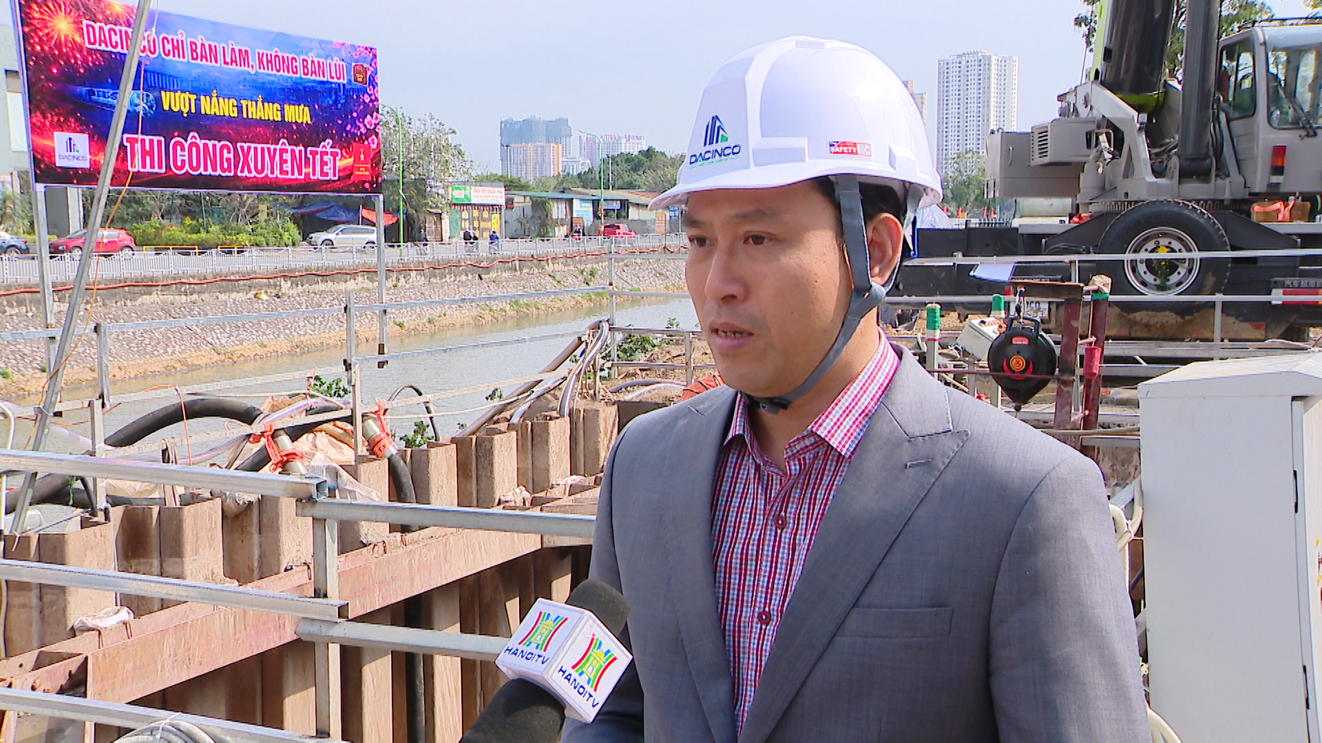 Trao đổi với phóng viên, ông Khương Minh Nghị, Phó Tổng Giám đốc Công ty TNHH Đầu tư xây dựng DACINCO cho biết, dù dự án không thuộc diện thi công theo lệnh khẩn cấp, doanh nghiệp vẫn chủ động tổ chức thi công xuyên Tết nhằm đẩy nhanh tiến độ, góp phần sớm cải thiện môi trường nước.