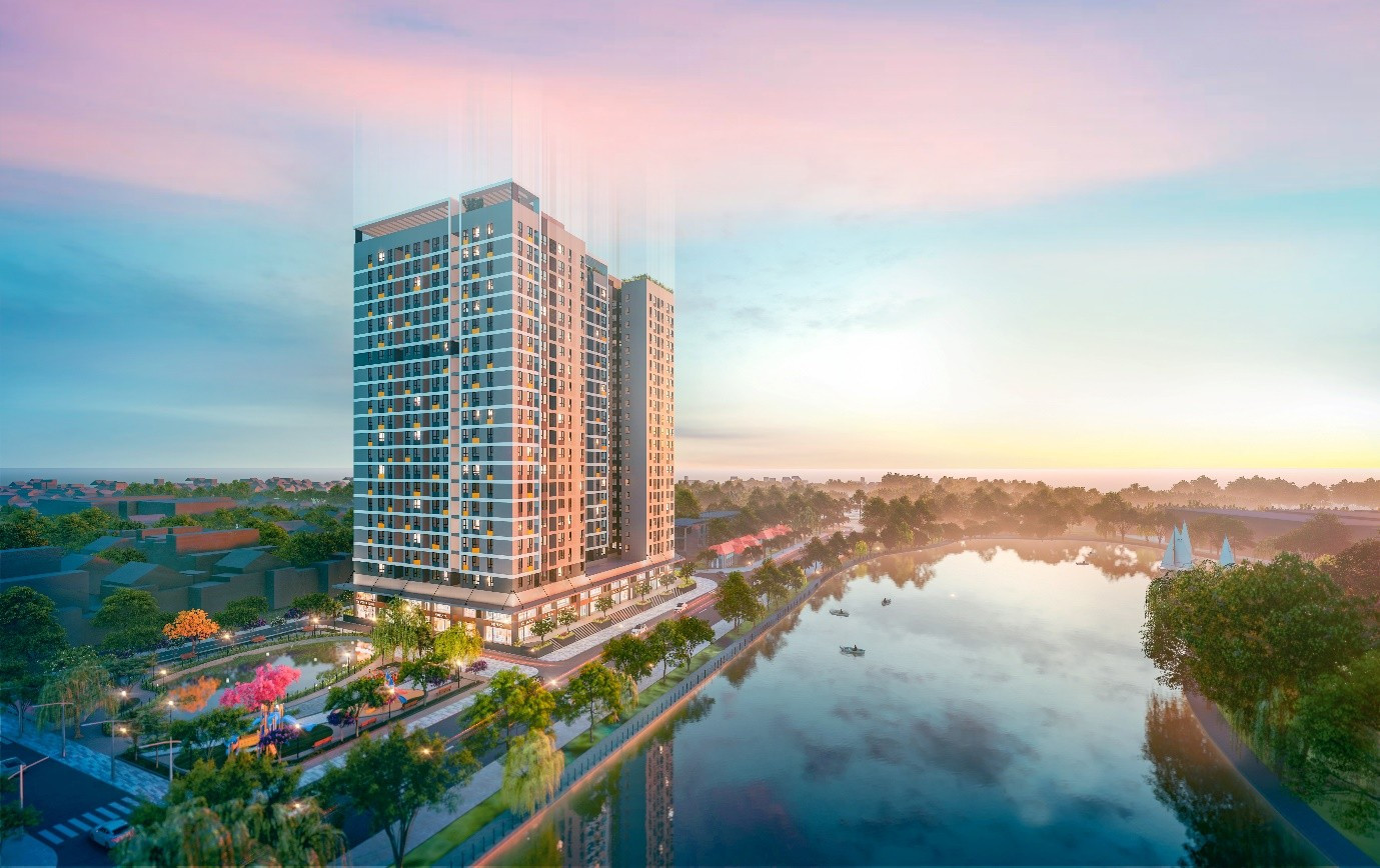 Phối cảnh tòa CT1 dự án NOXH Rice City Long Châu có giá bán cao nhất khu vực Hà Nội