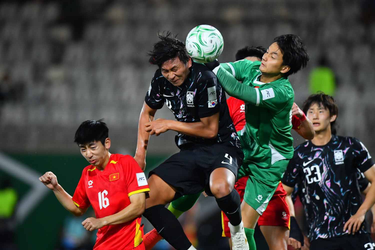 Dù thay đến 9 vị trí, nhưng cấu trúc đội hình của U23 Việt Nam không có dấu hiệu chệch choạc. Các học trò của HLV Kim Sang-sik đầy sắc lẹm khi tổ chức phản công. Đến phút 30, đại diện đến từ Đông Nam Á có bàn thắng mở tỷ số. Nguyễn Đình Bắc bứt tốc bên cánh trái, rồi nhả ngược bóng vào trong cho Nguyễn Quốc Việt dứt điểm căng vào góc cao khung thành U23 Hàn Quốc. Quốc Việt và đồng đội ăn mừng pha lập công đầy cảm xúc, khi cùng giương cao số 4 - số áo của trung vệ Nguyễn Hiểu Minh, để động viên đồng đội đang bị chấn thương nặng.