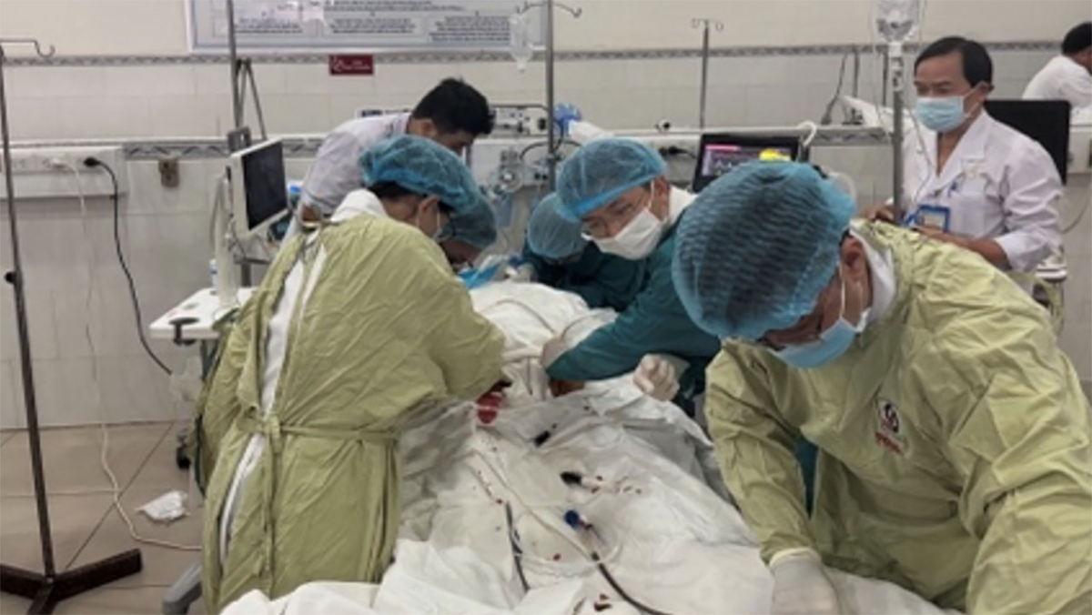 Ê kíp khẩn trương tiến hành hồi sức tim phổi (CPR), đặt nội khí quản và bóp bóng hỗ trợ hô hấp. Sau 15 phút, tuần hoàn vẫn không hồi phục.
