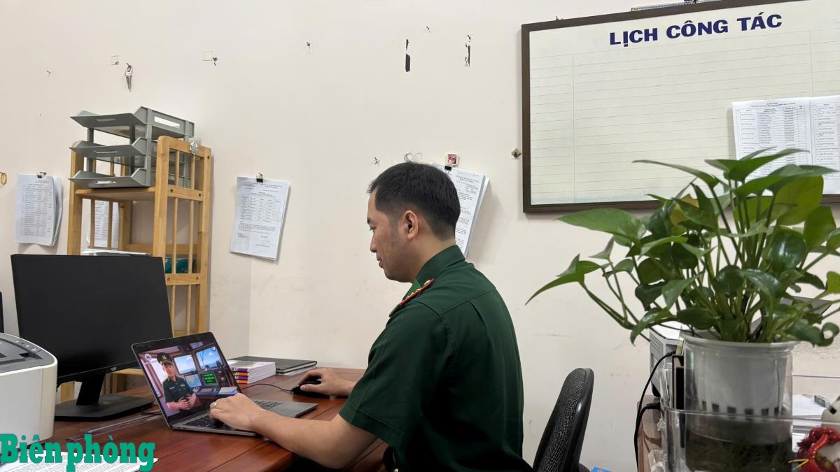 Cán bộ Đồn Biên phòng Nậm Nhừ khai thác trí tuệ nhân tạo và công nghệ số để xây dựng các sản phẩm truyền thông trực quan như video clip, đồ họa thông tin, slide tuyên truyền. Ảnh: Mùa Tùng