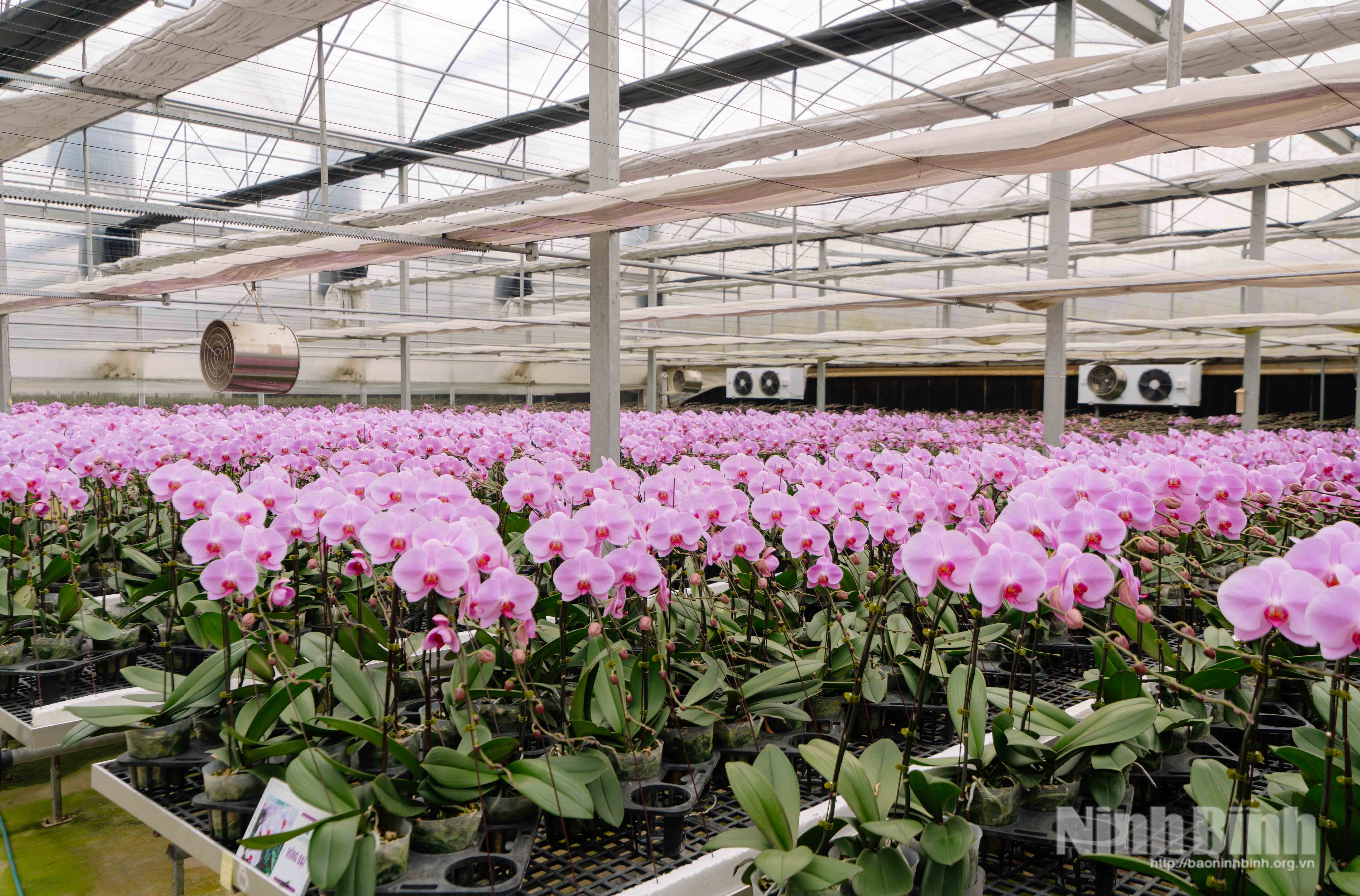 Khuôn viên trồng lan của Công ty cổ phần Nông nghiệp công nghệ cao Phù Vân có diện tích khoảng 2.000 m², được đầu tư hệ thống nhà kính đồng bộ, trồng và chăm sóc hơn 20 giống lan hồ điệp khác nhau.