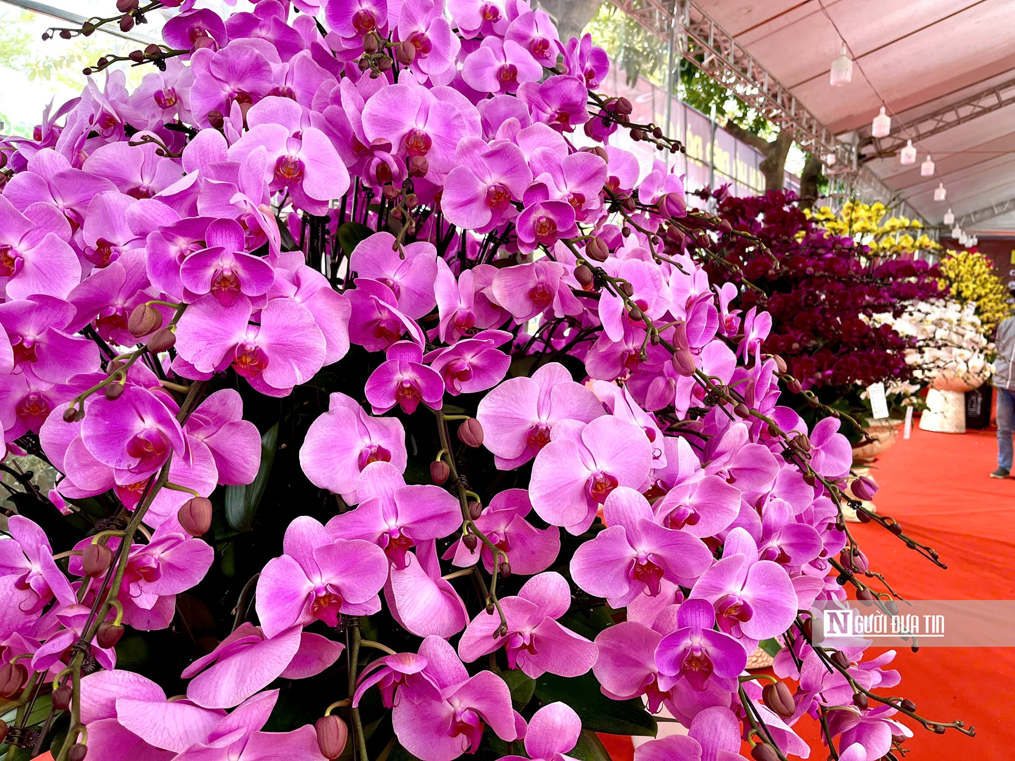 Không chỉ chú trọng số lượng cành, người chơi lan ngày càng quan tâm đến màu sắc và bố cục. Những gam màu như trắng, vàng kim, tím đậm, hồng phấn được ưa chuộng bởi mang ý nghĩa tốt lành.