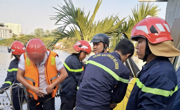 Trong ngày, Đội cứu nạn cứu hộ thuộc Phòng Cảnh sát PCCC và CNCH, Công an TP Hồ Chí Minh vẫn túc trực tại hiện trường vụ sập 2 căn nhà ngâm mình dưới dòng nước đen ngòm, đặc quánh, hôi thối để lặn mò tìm kiếm tài sản cho người dân. Tình trạng sức khỏe của 2 người bị thương trong vụ sập đã ổn định.