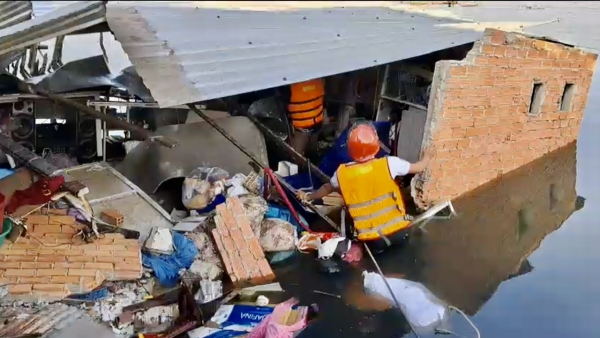 Tại hiện trường 2 căn nhà bị đổ sập hoán toàn xuống kênh, nhiều tài sản trong 2 căn nhà chìm trong nước. Đội Chữa cháy và CNCH KV8 do Trung tá Lê Minh Hải, Phó đội trưởng chỉ huy đến hiện trường sử dụng các thiết bị chuyên dụng lặn mò tìm kiếm các nạn nhân và tài sản.