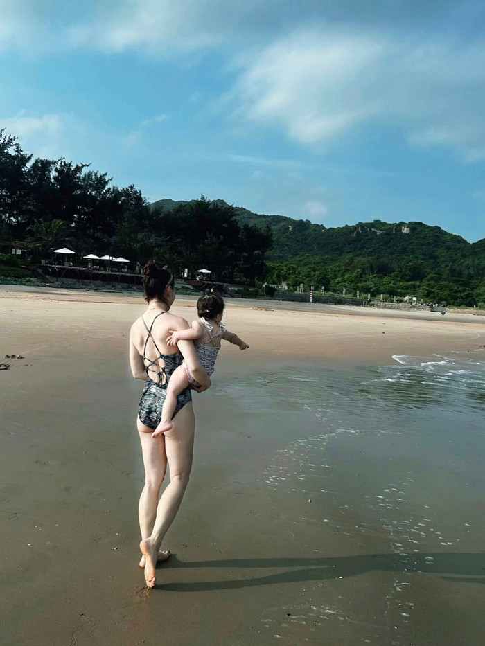 Bên dưới khoảnh khắc nữ diễn viên bế con gái nhỏ, cùng nhau nô đùa trên bãi biển được khán giả cho rằng toát lên năng lượng tích cực và sự mạnh mẽ sau những biến cố hôn nhân gần đây.
