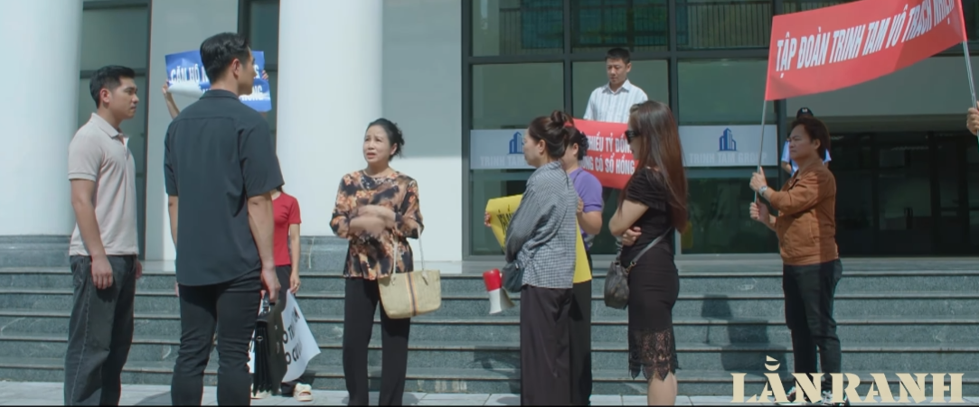 Trong khi đó, một nhóm điều tra viên khác khi đến khu chung cư của Trinh Tam đã chứng kiến một cuộc biểu tình tự phát của các cư dân. Họ tập trung đông người để đòi sổ hồng, vốn là quyền lợi chính đáng đã bị trì hoãn trong nhiều năm do các sai phạm về quy hoạch của tập đoàn.
