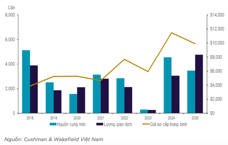 Theo Cushman & Wakefield Việt Nam, đà tăng bền bỉ của giá sơ cấp trong giai đoạn này một phần đến từ sự thiếu hụt nguồn cung nhà ở có mức giá phải chăng.