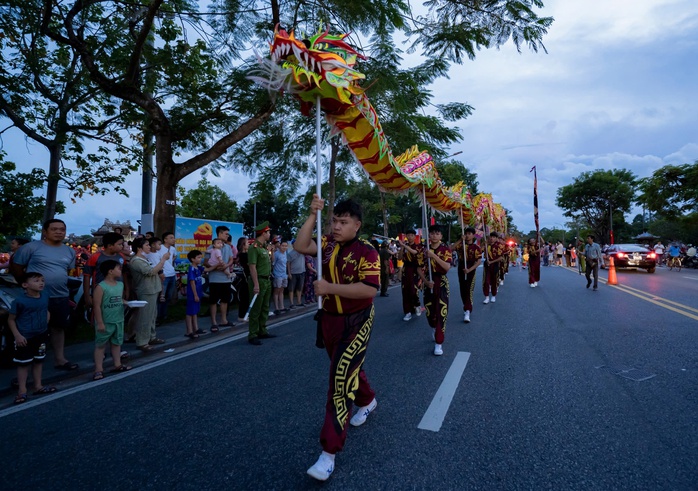 Chiều tối 4-10, nhằm ngày 13 tháng 8 âm lịch, chương trình Trung thu Hoàng cung Huế 2025, một sự kiện trong khuôn khổ Festival Huế 2025 do Trung tâm Bảo tồn di tích Cố đô Huế tổ chức, bắt đầu với hoạt động quảng diễn lân – sư – rồng và rước đèn Trung thu đường phố.