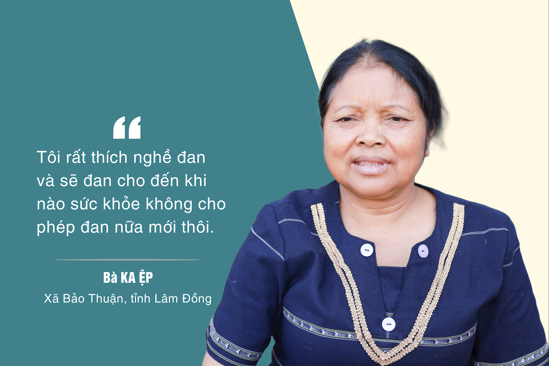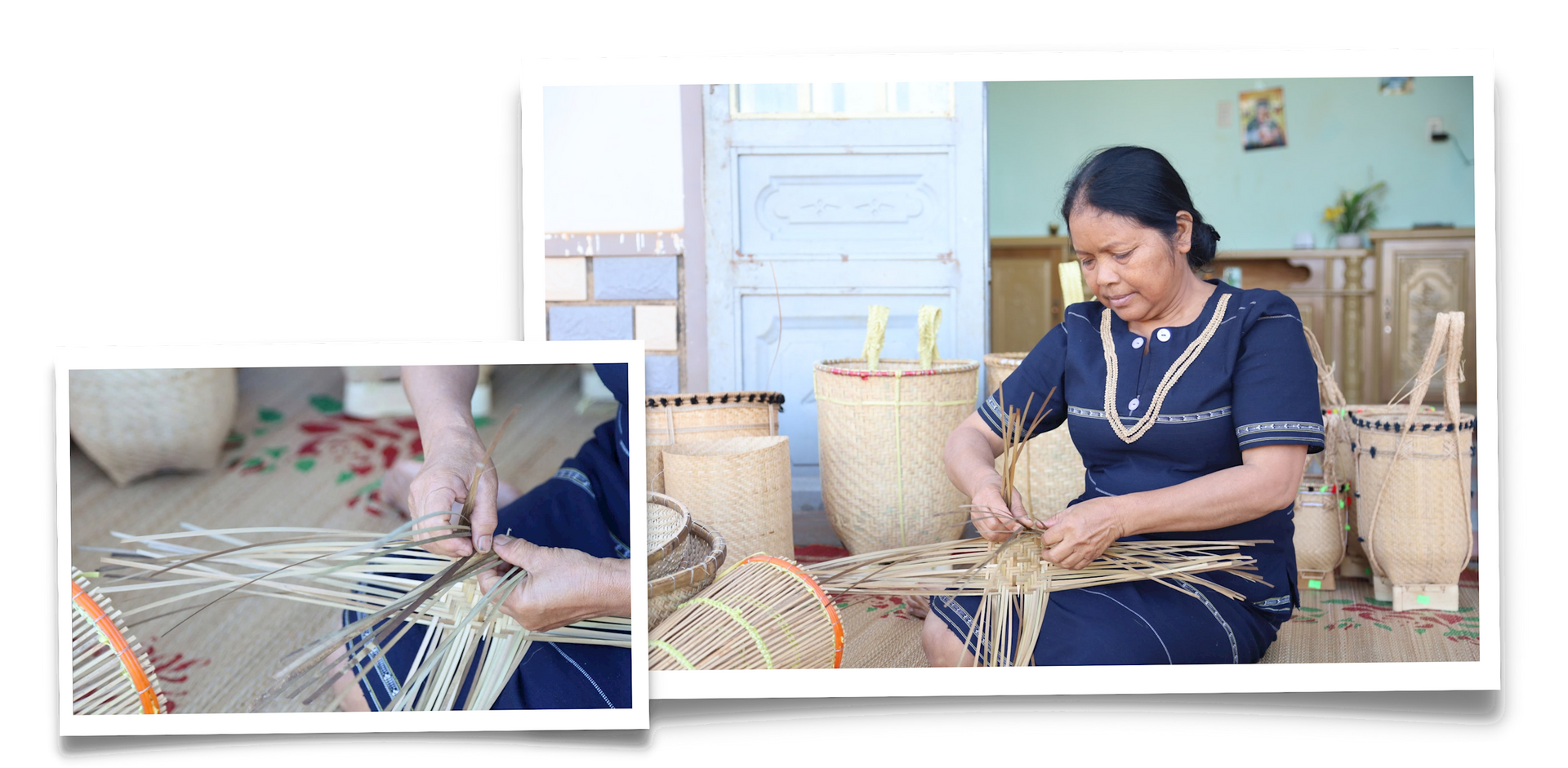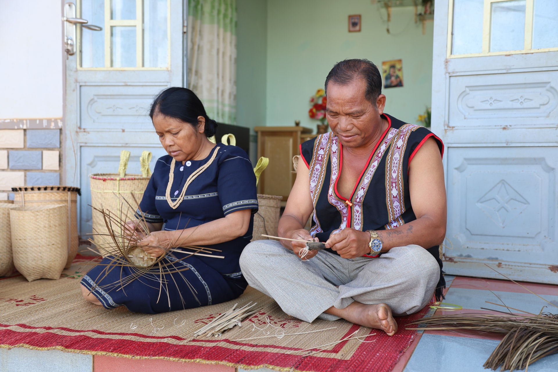 Từ nhỏ, bà Ka Ệp sớm được mẹ và các bà, các chị trong bon truyền dạy nghề đan. Với bà, tre nứa không chỉ là nguyên liệu, mà là “bạn”, là hơi thở của núi rừng.