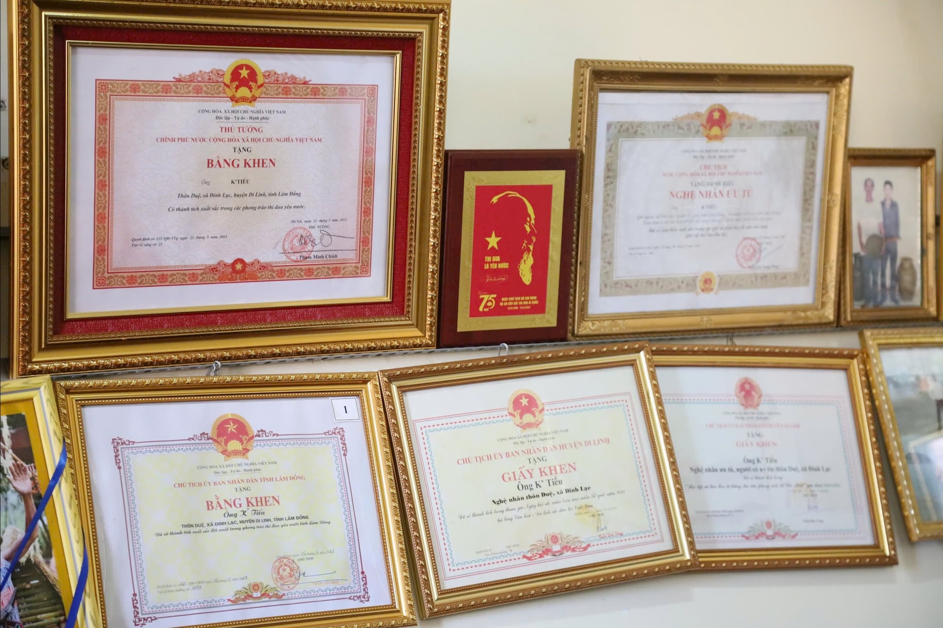 Già làng K' Tiếu đã được tặng nhiều Bằng khen giấy khen vì có nhiều thành tích góp phần gìn giữ và lan tỏa bản sắc văn hóa của dân tộc