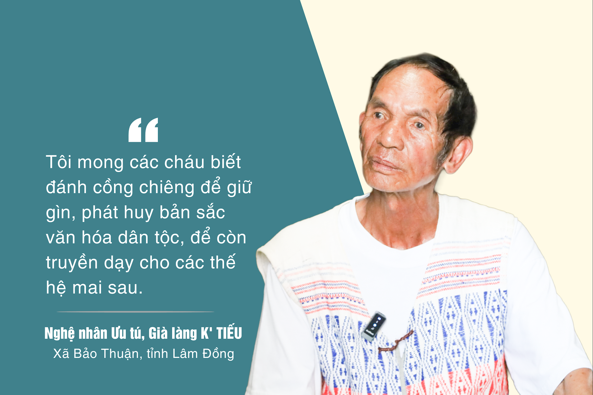 Với già, cồng chiêng không chỉ là nhạc cụ, mà là tiếng nói của núi rừng, là linh hồn của buôn làng. Suốt nhiều năm qua, dù tuổi đã cao, già làng K’Tiếu vẫn miệt mài truyền dạy từng bài chiêng, từng nhịp điệu cho lớp trẻ trong thôn.