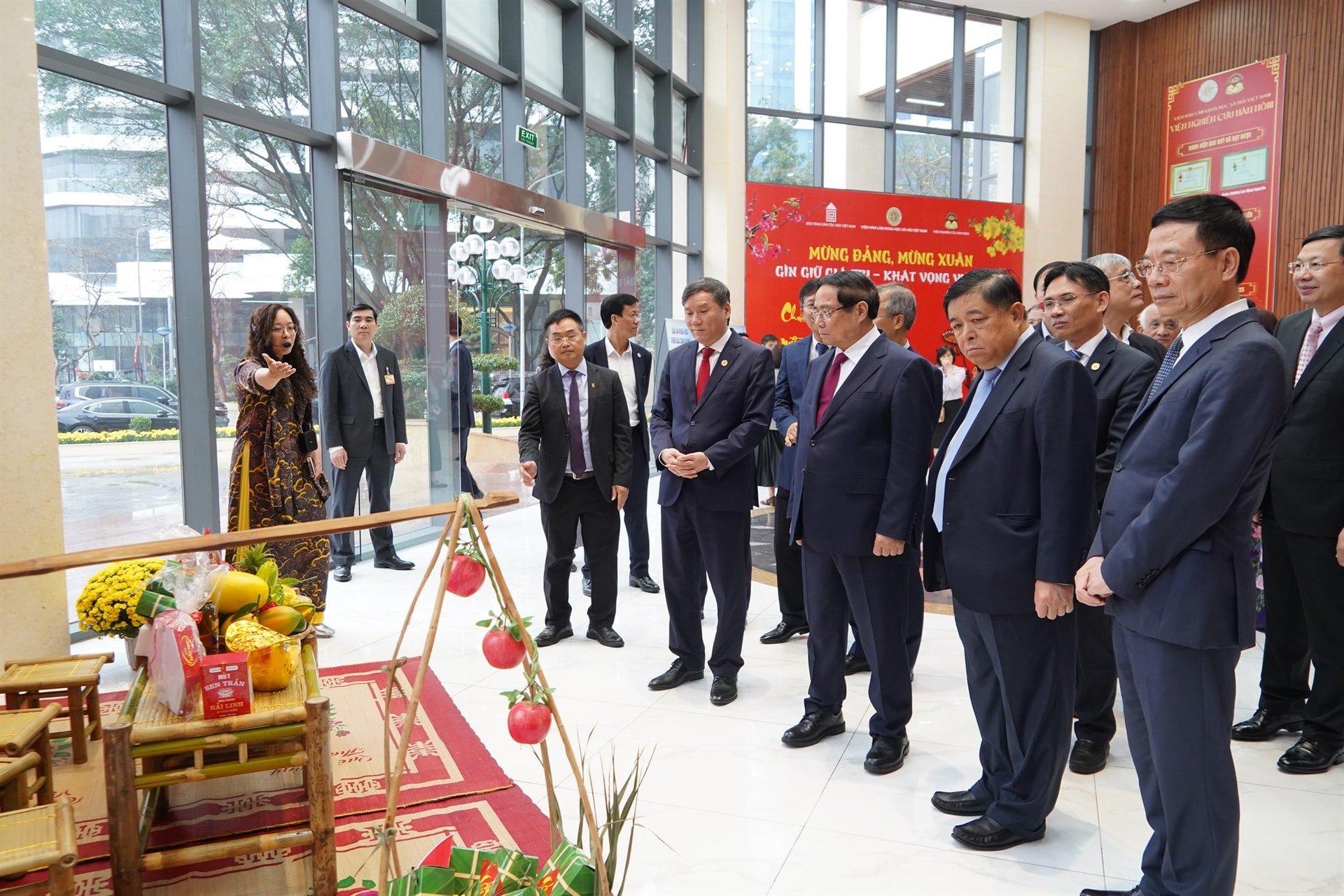 Thủ tướng Phạm Minh Chính tham quan không gian trưng bày về Tết Nguyên đán tại Viện Hàn lâm Khoa học và Xã hội Việt Nam