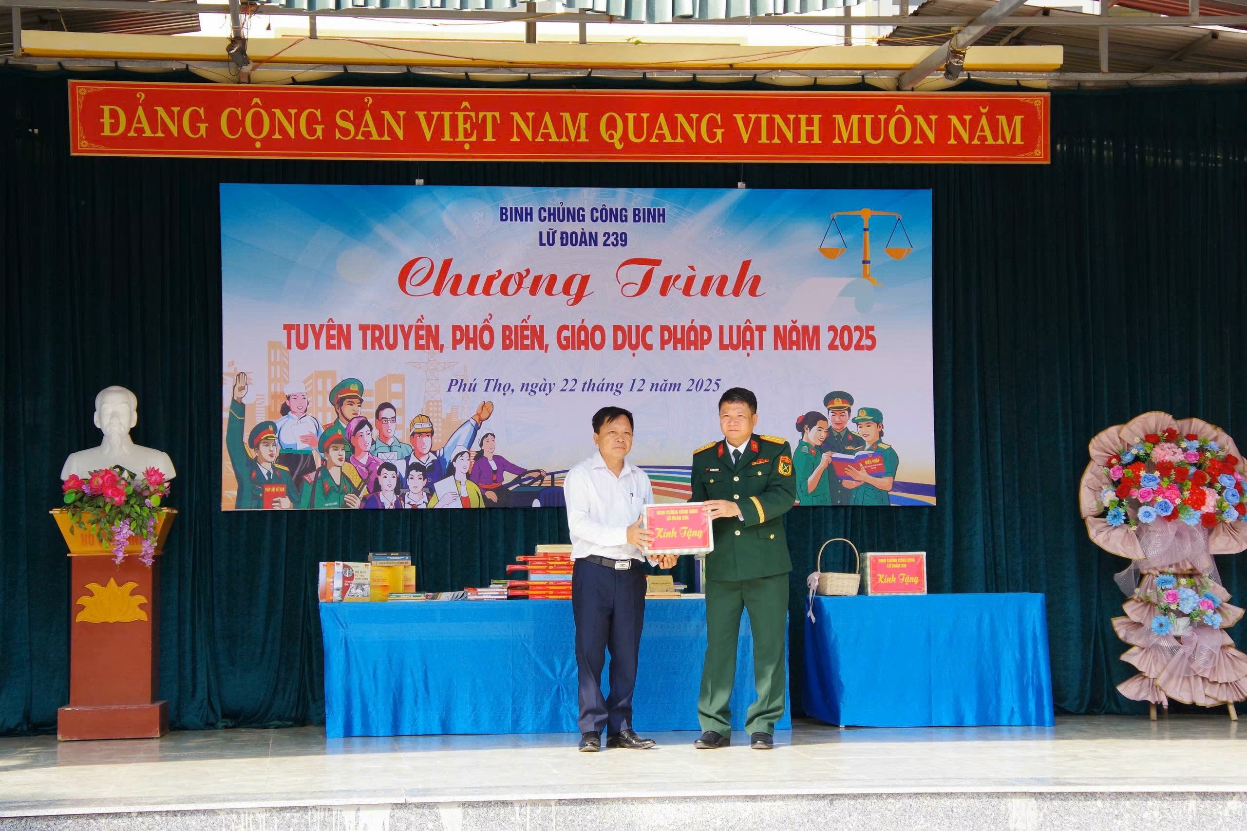 Điểm đáng chú ý khác trong cách làm của Lữ đoàn 239 là việc gắn tuyên truyền pháp luật với hoạt động an sinh xã hội. Bên cạnh các buổi phổ biến pháp luật, đơn vị còn trao quà cho các gia đình chính sách, tặng sách pháp luật cho thư viện nhà trường và phát các vật dụng tuyên truyền như "móc khóa pháp luật" cho giáo viên, học sinh.