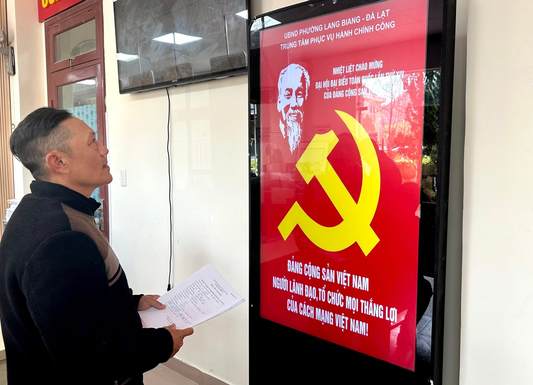 Ông Thân Văn Nghiên - Phó Giám đốc Trung tâm Phục vụ hành chính công phường Lang Biang - Đà Lạt cho hay: “Thông qua không gian tuyên truyền nhằm giúp người dân trong thời gian chờ đợi và thực hiện thủ tục hành chính có điều kiện tìm hiểu sâu hơn về ý nghĩa, tầm vóc của Đại hội Đảng lần thứ XIV. Qua đó, đại hội không còn là nội dung mang tính khái quát, xa vời, mà trở thành mối quan tâm chung, gắn bó trực tiếp với đời sống của Nhân dân. Đồng thời, góp phần làm nổi bật tầm vóc, ý nghĩa đặc biệt quan trọng của Đại hội XIV, đặc biệt lan tỏa sâu rộng hình ảnh một nền hành chính phục vụ, gần dân, thấm đẫm giá trị văn hóa, nhân văn và tư tưởng Hồ Chí Minh, tạo nền tảng vững chắc để đưa tinh thần và Nghị quyết Đại hội sớm đi vào cuộc sống”.