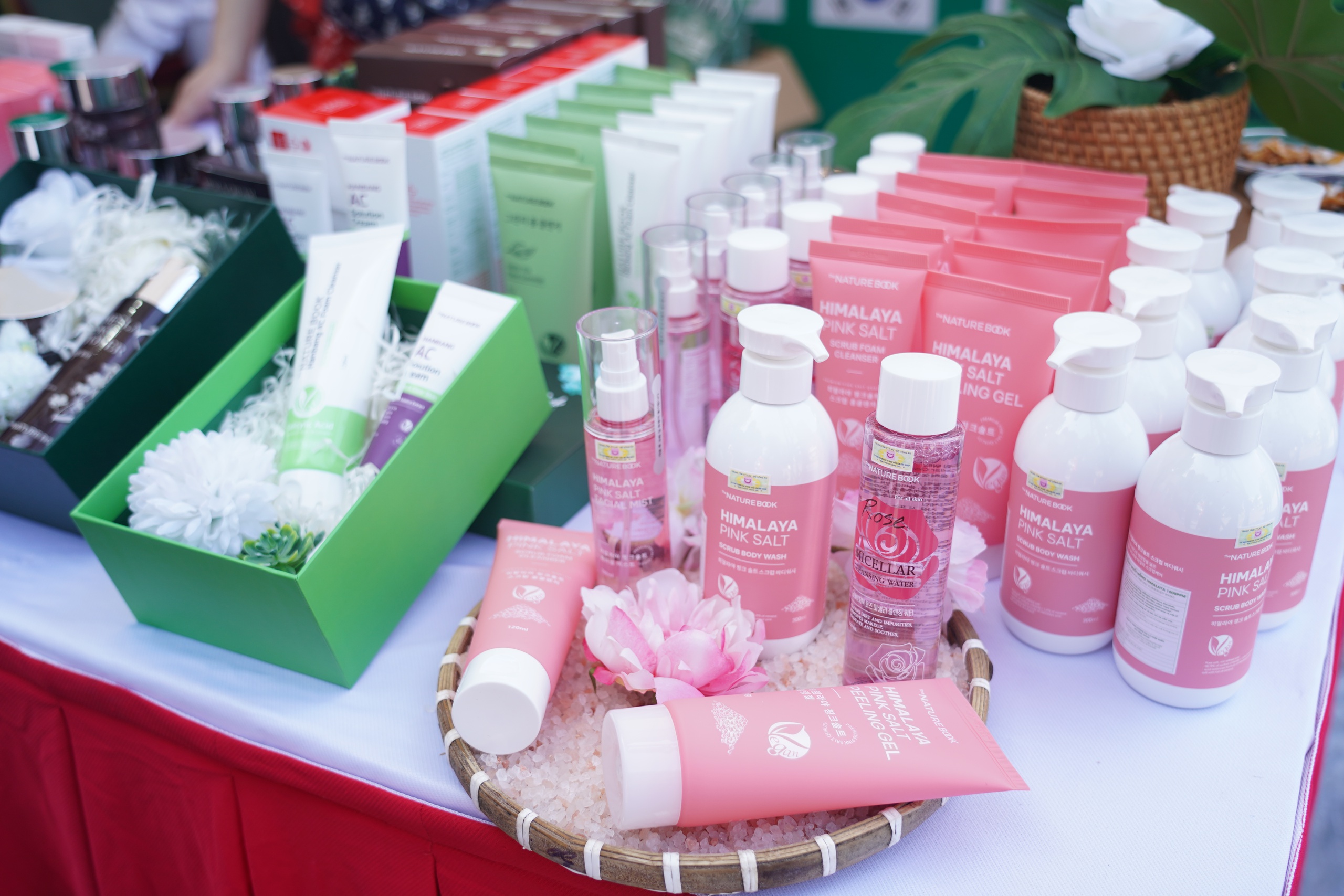 Gian hàng làm đẹp với mỹ phẩm an toàn thu hút sự quan tâm của phụ nữ hiện đại.