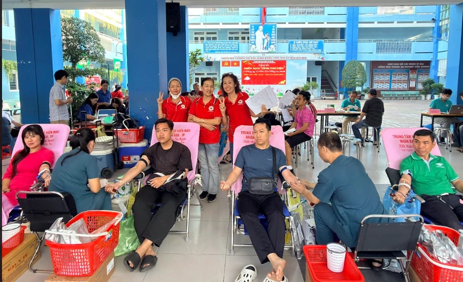 Đông đảo cán bộ, đảng viên, đoàn viên và Nhân dân phường Tân Sơn Hòa, TP Hồ Chí Minh tham gia Ngày hội Hiến máu tình nguyện.