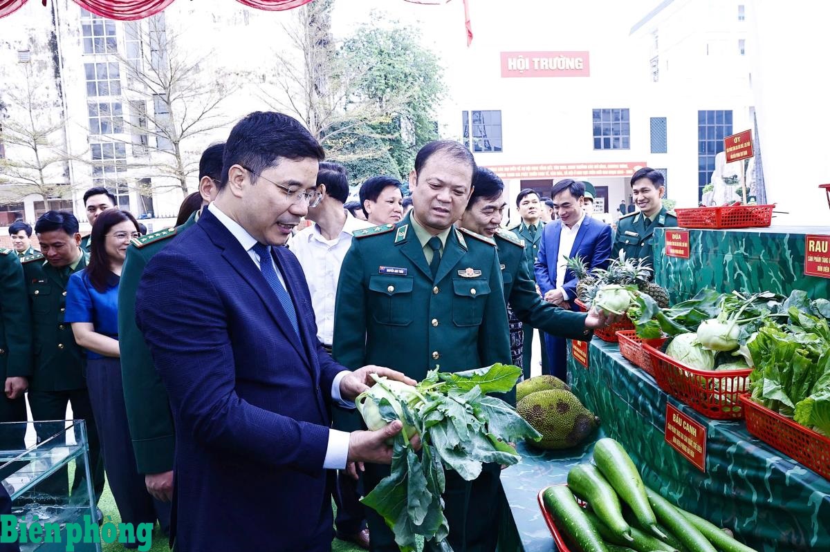 Các đại biểu tham quan gian hàng trưng bày sản phẩm, mô hình tăng gia của các đồn Biên phòng thuộc Bộ đội Biên phòng tỉnh Thanh Hóa. Ảnh: Xuân Khoa