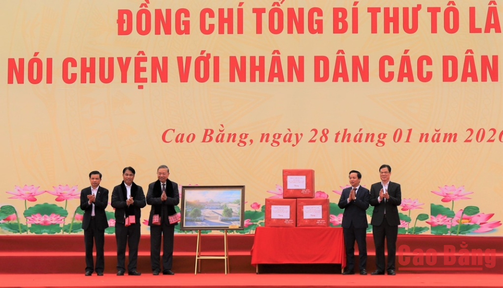 Trong không khí ấm áp của mùa xuân lịch sử, chiều 28/1/2026, tại Sân vận động trung tâm tỉnh, phường Thục Phán, Tổng Bí thư Tô Lâm đã có buổi gặp mặt, trò chuyện thân mật với nhân dân các dân tộc tỉnh Cao Bằng nhân dịp đến thăm và làm việc tại địa phương. Buổi gặp gỡ đầy xúc động không chỉ gợi nhớ những trang sử hào hùng khi Bác Hồ trực tiếp nói chuyện với đồng bào nơi đây 65 năm trước, mà còn phản ánh tinh thần đoàn kết, niềm tin và kỳ vọng vào tương lai phát triển bền vững của vùng đất biên cương Cao Bằng. Đây là sự kiện trọng đại chào mừng kỷ niệm 96 năm ngày thành lập Đảng Cộng sản Việt Nam (3/2/1930 - 3/2/2026), 85 năm Ngày Bác Hồ về nước (28/1/1941 - 28/1/2026) và 65 năm Ngày Bác trở lại thăm Cao Bằng (21/2/1961 - 21/2/2026).