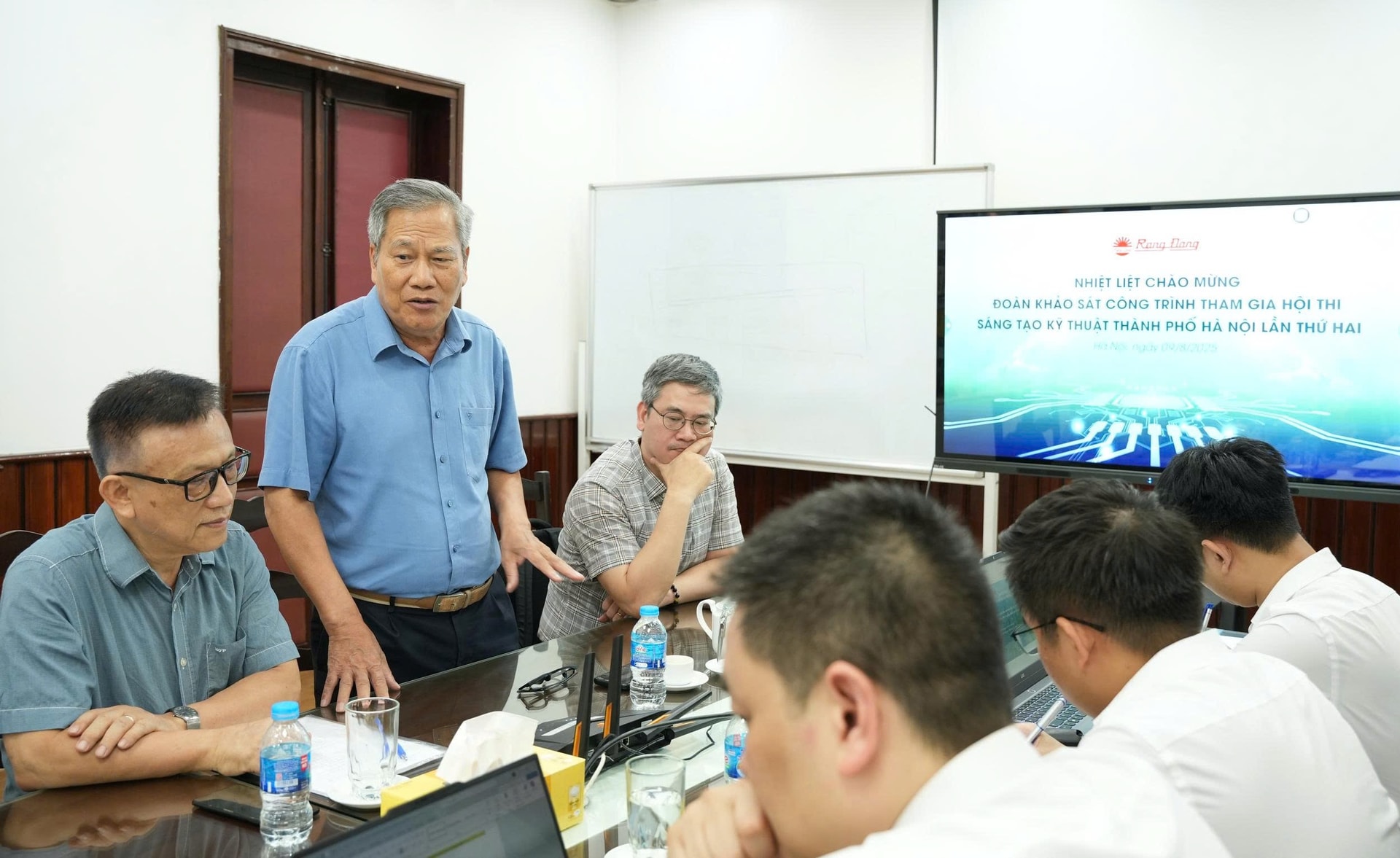 TS Lê Xuân Rao và các thành viên hội đồng giám khảo khảo sát công trình tham gia Hội thi Sáng tạo kỹ thuật Hà Nội lần thứ 2 tại Công ty CP Bóng đèn Phích nước Rạng Đông
