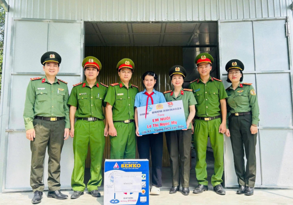 Phòng Quản lý xuất nhập cảnh Công an TP Huế và Chi đoàn Công an xã Lộc An nhận đỡ đầu em Lê Thị Ngọc My.